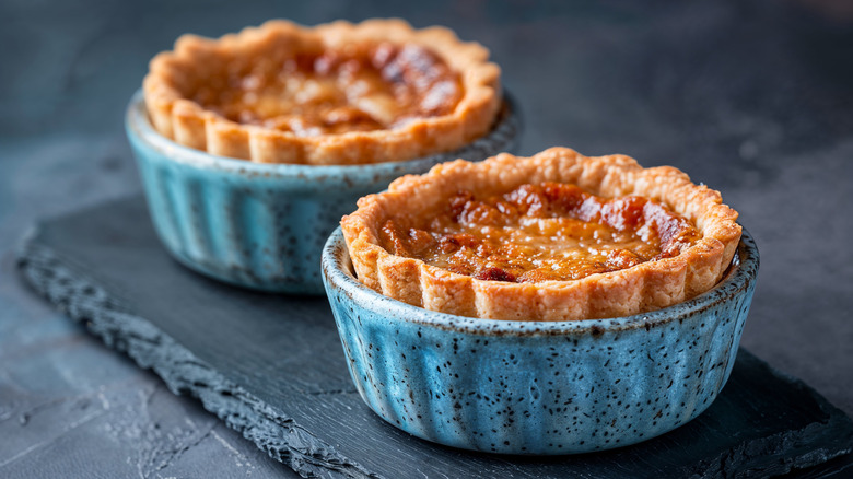 Buttery, flaky, sticky, and sweet, butter tarts are a quintessential Canadian treat. There's nothing fancy about the tarts and that's exactly what people love about them. Traditional butter tarts consist of small pastry cups filled with a mixture of butter, brown sugar, corn syrup, egg, and vanilla. Some people also add raisins or swap out the corn syrup for maple syrup. The tarts are baked until the crust is golden and the filling has semi-solidified. Think of them like handheld pecan pies without the nuts.