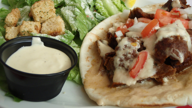 Nova Scotia may be best known for its lobster, but it's also home to another dish that's just as beloved by locals. The donair is a delicious handheld meal that consists of a pita filled with thinly sliced beef that's been roasted on a spit like shawarma or al pastor taco meat. The meat is topped with diced onions and tomatoes and slathered in a sweet, tangy, and garlicky white donair sauce. It's the perfect late-night bite after bar hopping or just the right pick for when you want something ultra indulgent.