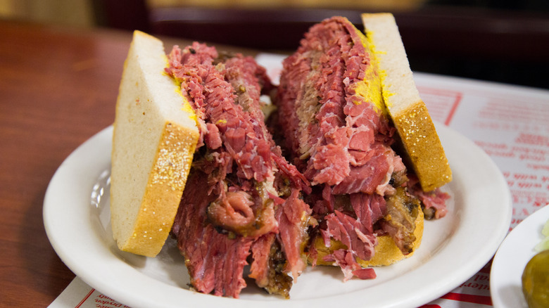 No visit to Montreal is complete without trying the city's most iconic dish: Montreal smoked meat. It's similar to New York-style pastrami, but has a flavor and texture that's all its own. While pastrami is typically made with the fatty navel cut of beef and wet rubbed with coriander and pepper, Montreal smoked meat is made with brisket that's dry rubbed with spices like coriander, mustard seed, and peppercorns. Both are marinated and smoked. Many find Montreal smoked meat softer, spicier, and smokier than pastrami.