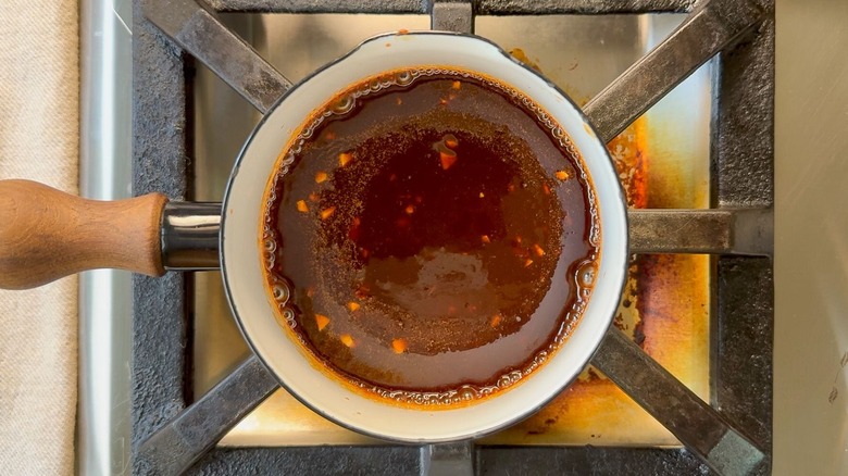 - Add the remaining dipping sauce ingredients to a small pot and bring to a gentle boil over medium heat.