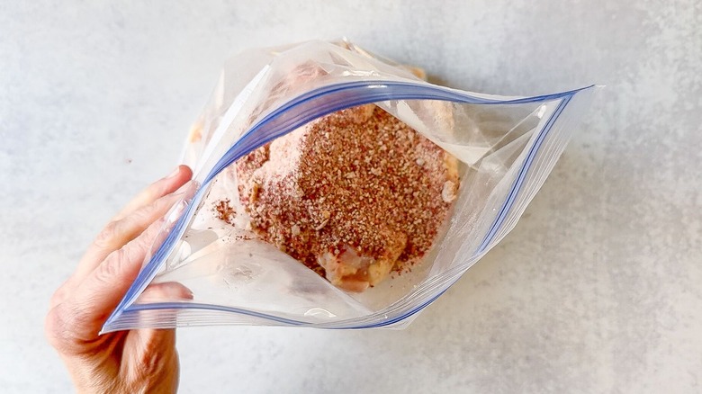 - Place the wings in a large ziplock bag and add the rub. Seal the bag tightly and massage to evenly coat the wings with the rub.