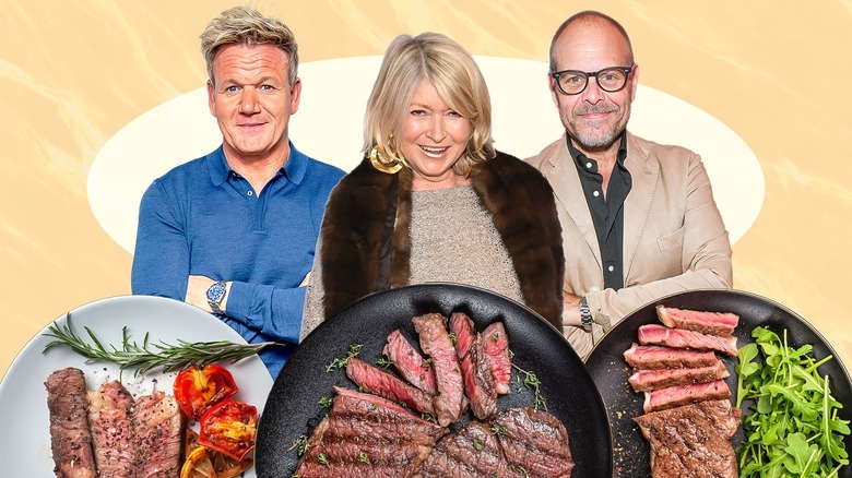 Cooking steak might seem simple, but there's a fine line between getting it just right and ending up with something dry, flavorless, or just boring. Plus, the perfect steak dinner isn't just about a flawlessly cooked cut of meat; it's also about the sides, sauces, and finishing touches that take the meal to the next level. For fans of cooking shows, you've likely seen celebrity chefs make the process look effortless, creating stunning steak dinners that could easily rival restaurant-quality meals. Luckily, many of their expert tips are easy enough for home cooks to follow.