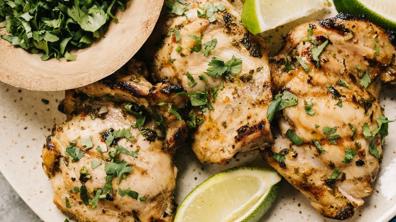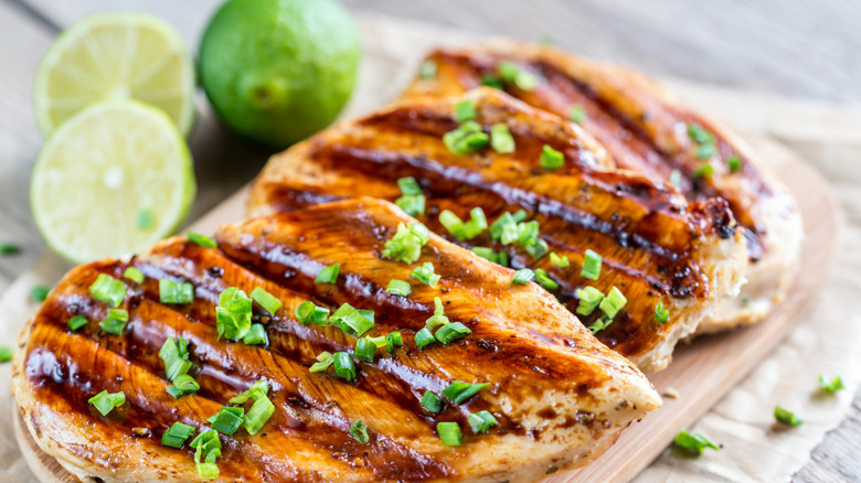 Allow your chicken to soak in this liquid for about two to five hours, and then you can grill, broil, or bake according to your go-to marinated chicken recipe. When it comes time to serve, pair this dish with — what else? A margarita. (And while you've got the grill fired up, you can even throw your citrus on there for a tastier cocktail.) Whether you enjoy this chicken as a main dish, chopped up and served over a salad, or folded into a tortilla on taco night, this juicy, flavorful marinade will turn any mealtime into a happy hour.