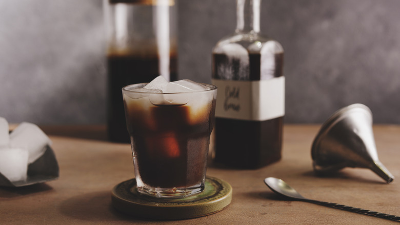 Justin Stiefel, CEO and Master Distiller at Heritage Distilling Company, agrees. "Using stale or low-quality coffee beans can drastically affect the taste," he said. That's right, it's not just about how expensive your beans were — coffee can also go stale. Even after brewing, coffee can losing its aroma and taste over time, says Luke Barr, Global Master Mixologist at NEFT Vodka. "This is due to oxygenation causing the oils and sugars to lose their bold characteristics," he explains. "The oils can also start to separate ... This means a more astringent flavor and less ability to create a well-balanced cocktail." Make sure your coffee is fresh before brewing and adding to your drinks, or that nasty aftertaste will follow the coffee into the cocktail.