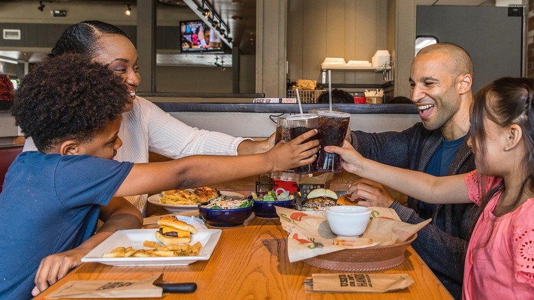 As other restaurant chains demonstrate, promotions of this kind tend to favor guests gathering on-site. However, the sports bar does a solid for time-strapped parents, and that's by extending the perk to purchases made outside the restaurant. A social media post from 2021 alerted consumers that they could skip the dinner reservation, and instead, place an online order (web or app) to get their eats delivered. It's flexible, it's convenient, and best of all, it's free.