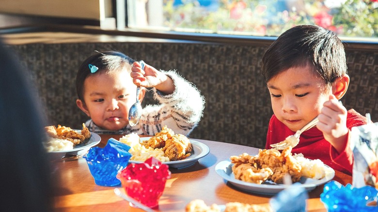 Many folks won't know about Luby's, and that's simply due to the fact that the restaurant is exclusive to a single state — Texas. It's been around since the Second World War ended, and allows guests to build a personalized feast on cafeteria-style serving trays. It's also one of the few chain restaurants dishing up kid-friendly deals – not once, but twice, in an average week. Children's meals normally go for $5.99 — a slammin' bargain in and of itself — but hop in on Wednesdays and Saturdays, and the whole shebang rings up for free.