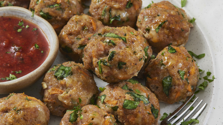 Meanwhile, chicken's moisture retention means there's less risk of the dish drying out, as long as you don't overcook it. Try crafting a batch of chicken meatballs — you'll get more juiciness in the final product. Likewise, a batch of seared and broiled parmesan chicken patties won't pop with meatier turkey, so take note when to swap.