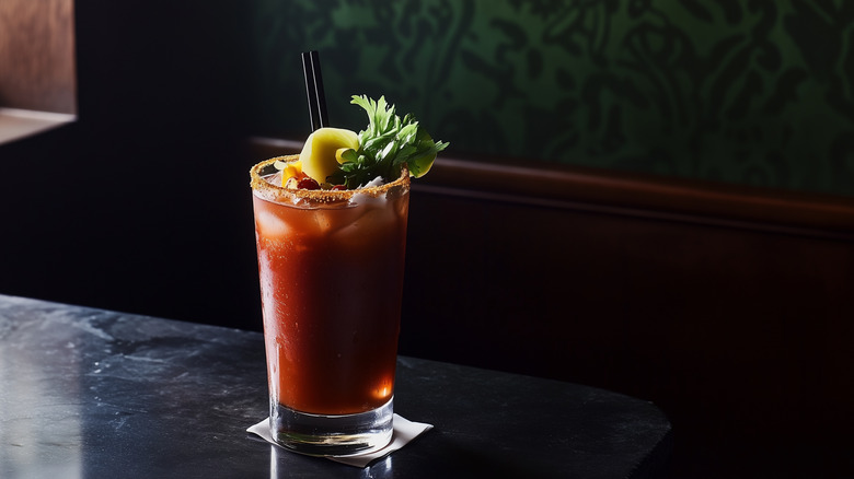 While there are many variations on a Bloody Mary/Bloody Maria mixer, most bartenders will recommend amping up the spice component when you're using tequila. Of course, tomato juice will be your base, but you can heat that up with different hot sauces, horseradish, Worcestershire sauce, and even jalapeño. Don't forget a dash of salt and pepper, some kind of squeeze of citrus juice, and any garnish your heart desires. This breakfast drink can be supplemented with the more traditional lime, lemon, and/or celery, or you can get wild and throw in some shrimp, bacon, pepperoncini peppers, or even chorizo. You can also salt the rim here, too. However you decorate your drink, don't forget the ice.