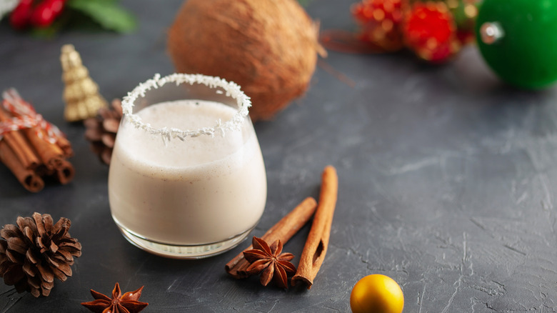 The coquito is most traditionally made with rum, but you can swap in tequila to give this winter specialty a spicier vibrancy. Coming from Puerto Rico, the coquito is usually prepared around the holidays, with a consistency and taste similar to eggnog. There are many variations on the recipe, but most bartenders agree it's made with a combination of coconut milk and/or coconut cream (coquito means "little coconut,") condensed milk, evaporated milk, and spices such as cinnamon, nutmeg, and vanilla. When blended together, the drink can taste delightfully indulgent.