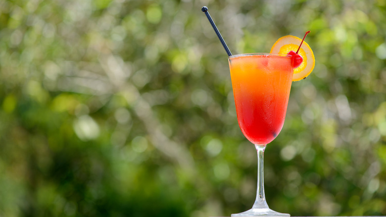 When made well, this drink doesn't have to remind you of your first order in college — it can also be a delicious brunch option, much like a Paloma. The Tequila Sunrise, so named for its vibrant color palette, comes to us from the 1970s in Sausalito, California. There is a story that's been passed around about one of the members of The Rolling Stones (either Jagger or Richards, in competing accounts) enjoying it at the launch party for their tour. The 1972 tour was then dubbed "the cocaine and Tequila Sunrise tour," further popularizing the drink. Then in 1973, the Eagles got on the Tequila Sunrise bandwagon, naming a song after the cocktail and putting it on their album.