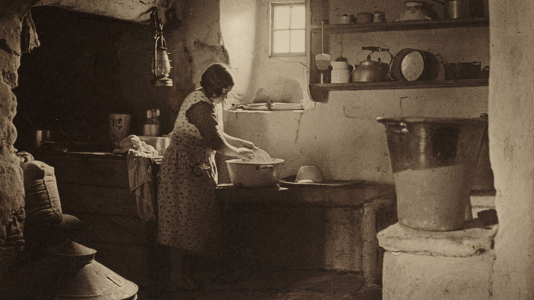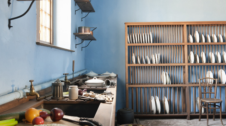 If you've ever been a fan of historic British books or TV shows or war movies that take place on submarines, you may have heard the term "scullery." Merriam-Webster defines this very old word as a room devoted to "messy kitchen work," such as cleaning and storing dishes and utensils. A grand English manor might have had scullery maids, who were kitchen servants usually found tucked away in sculleries, doing the unsightly work of cleaning the messes after the cooking and eating were done.