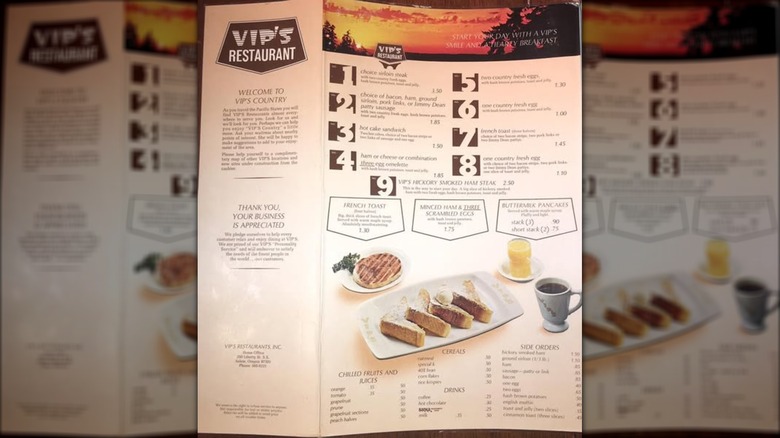 Located up and down the West Coast in the 1980s was the diner-style VIP's Restaurant. The first VIP's was opened in 1968 in Oregon by Keith Andler and Robert Smith. The key to the chain's success was the owner's strategy of opening restaurants along highway exits, making VIP's a common stop on road trips. Similar to Denny's — another restaurant that has to close hundreds of locations – it also kept late hours, making it a place to grab a bite to eat any time of the day or night.