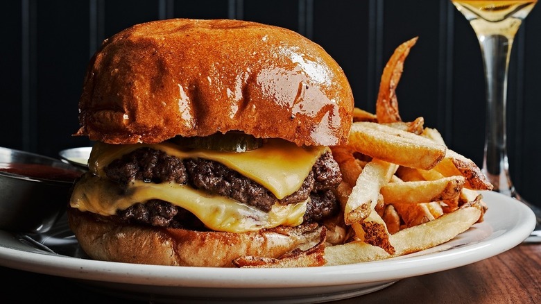 Bourdain and Brock indulged in a variety of dishes at Holeman and Finch including country ham served thinly sliced like prosciutto and deviled eggs done three ways with jalapeño, coppa, and bread and butter pickles. The most decadent dish by far though was Holeman and Finch's famous double cheeseburger, which Bourdain called, "a very carefully built hamburger." The burger is now a fixture on the menu and features two thin patties with shaved red onions, melted American cheese, and bread and butter pickles on a toasted white bun.