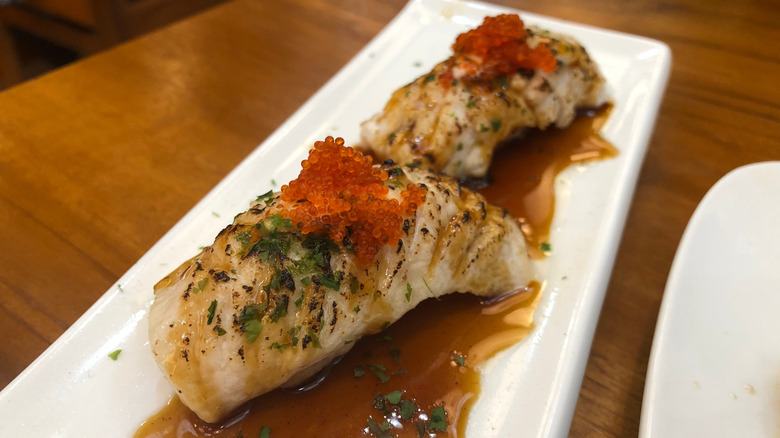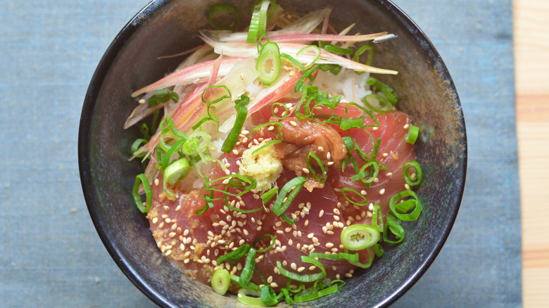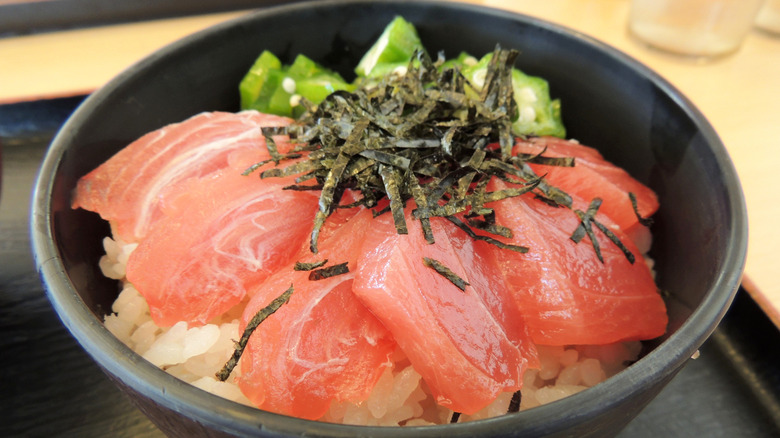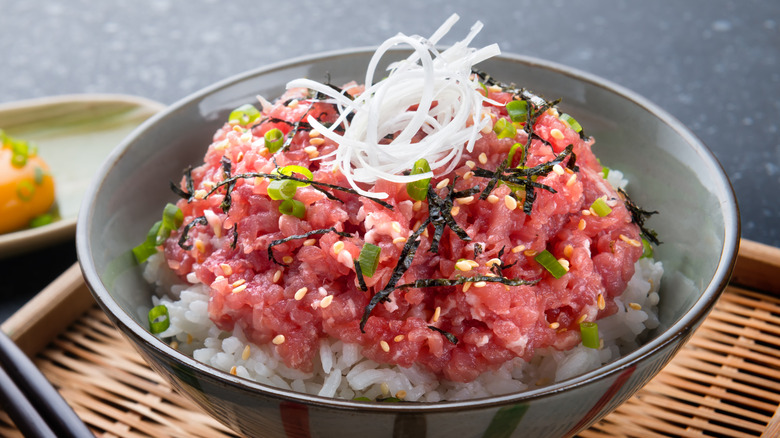 Like many Japanese dishes, tataki is a cooking preparation and isn't just allocated to tuna. Almost all fish served raw in Japan can be found in this way of preparation. The most common is Yellowtail tuna. However, bonito — a fish similar to mackerel — is the original protein for this dish. Bonito tataki originated in the Tosa area, now referred to as the Kochi prefecture. The dish was created in the 17th century when the ruling lord, Kazutoyo Yamauchi, banned consuming raw bonito due to hygienic concerns. Thus, the local people invented tataki to disguise the raw center underneath its seared crust. Thankfully, enjoying the tasty tataki isn't so secretive anymore. Tuna tataki is a common dish eaten in restaurants and households throughout Japan.