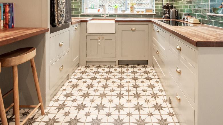 While tiles might seem like a hard sell today, this trend just needs the right updates to make a stylish comeback. Take inspiration from the 1920s by incorporating Art Deco designs into your tiles. For smaller kitchens that lack space for additional decorations, a subtle monochrome 1920s-inspired design would be the perfect touch. If you have more room, lean into the minimalist modern in your overall kitchen design and then play it up with bold, colorful tile flooring. This trend offers endless possibilities for creating a kitchen that's uniquely yours, blending modern style with vintage charm.