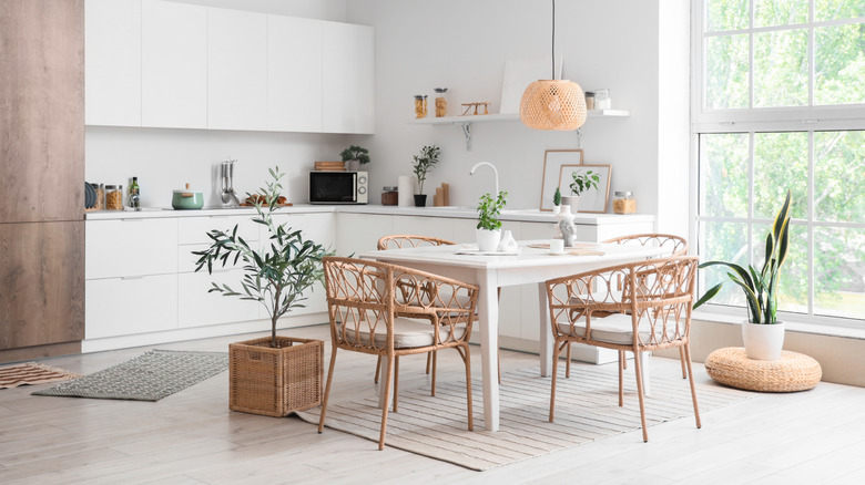 Transform your kitchen into a sun-drenched Mediterranean villa getaway by embracing another iconic trend from the 1970s: wicker, rattan, and cane. These natural materials were the "it" element of the decade, and for many millennials, they evoke nostalgic memories of grandma's house. While the trend didn't always age well when paired with other kitchen trends of the day, like darker wood cabinets or harvest tones like burnt orange and mustard yellow, it can make a stylish comeback when paired with modern lines and brighter, fresher color palettes.