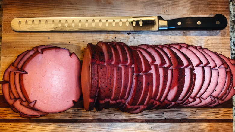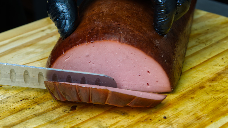 In Oklahoma specifically, there's one type of meat that is used in barbecue all the time: bologna. This smoked southern classic sounds like an unusual meat choice but ever since its inception in Oklahoma, it has remained popular. It can be found anywhere from barbecue restaurant joints to parties all over the state. Also known as Oklahoma prime rib, Oklahoma-style barbecue often involves taking an entire log of bologna and smoking it. The bologna is scored on the outside, giving it a distinctly geometric shape, and coated in a glaze. From there, it just needs to be sliced and served.