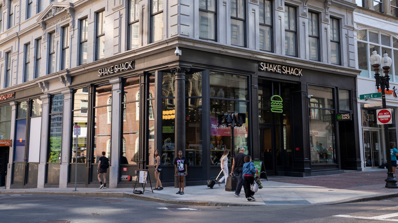 Most of Shake Shack's locations — at least stateside — offer a small variety of beers and wines featured on its menus. Typically, wines found at Shake Shack are made exclusively for the brand, meaning you won't find them at liquor stores or any other restaurants on this list. Most stores will offer a small selection of white, rosé, and red wines while others may have a wider variety including orange or sparkling wines.