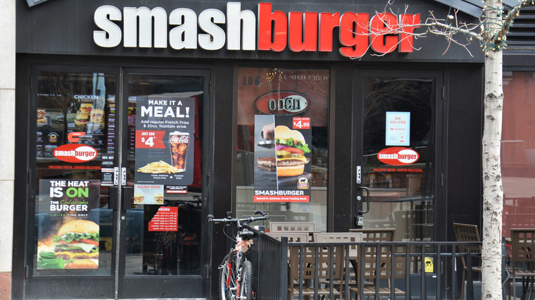 Smashburger is another popular fast casual burger spot that serves alcohol along with a hearty meal. Many locations around the country have beer, wine, and cocktail options to purchase with your burger or chicken sandwich. The chain even has at least one location with a full bar, which opened in 2022 inside the Denver Airport. This "elevated" Smashburger establishment features ten beers on tap, including brews from local Colorado breweries.