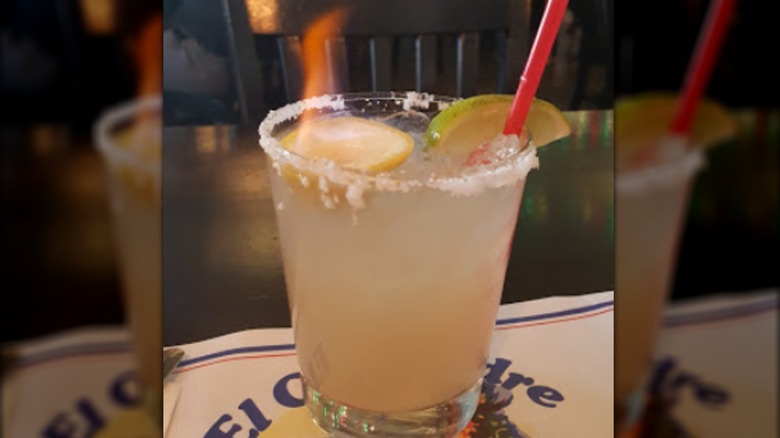 To visit the "Home of the Flaming Margarita," check out El Compadre in Los Angeles. Alongside authentic Mexican cuisine, you can order one of a few specialty cocktails. The pride of the bar is definitely the margarita, which is lit on fire before serving. The flame in this margarita comes from a lemon slice on the top, which creates an intense blue flame. It's garnished with salt on the rim or with tajin, a combination of salt, lime, chili peppers, and a lime wedge. It has all of the ingredients of a perfect margarita and a little something extra in the presentation.