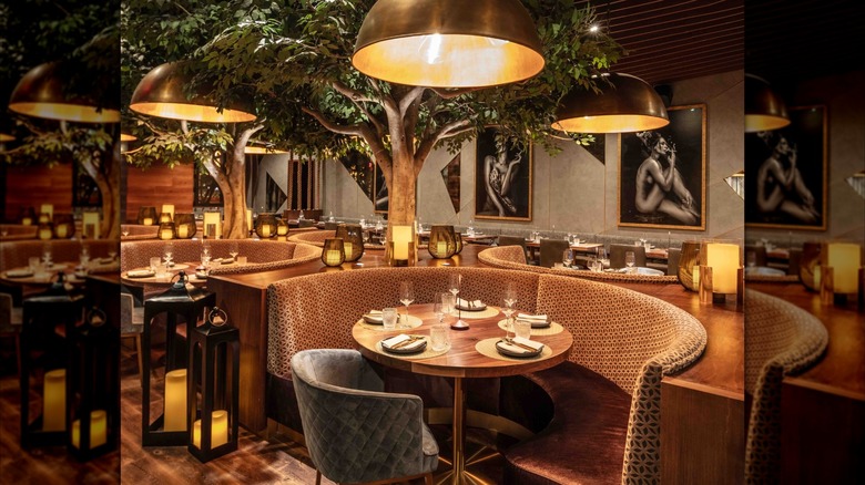 If you want to enjoy a show-stopping cocktail along with your meal at the Michelin-recommended steakhouse in Denver, Colorado, try the "Tiki This" at Guard and Grace. This drink is very tropical thanks to cachaça, Pimms No. 1, spiced falernum, and plus passion fruit simple syrup. The flaming lime on top is the most impressive part of the drink's presentation, which comes in a themed tiki glass. This is a summery drink that's not always listed on the menu, but you can ask the bartender to whip one up for you, complete with the fired citrus topper.