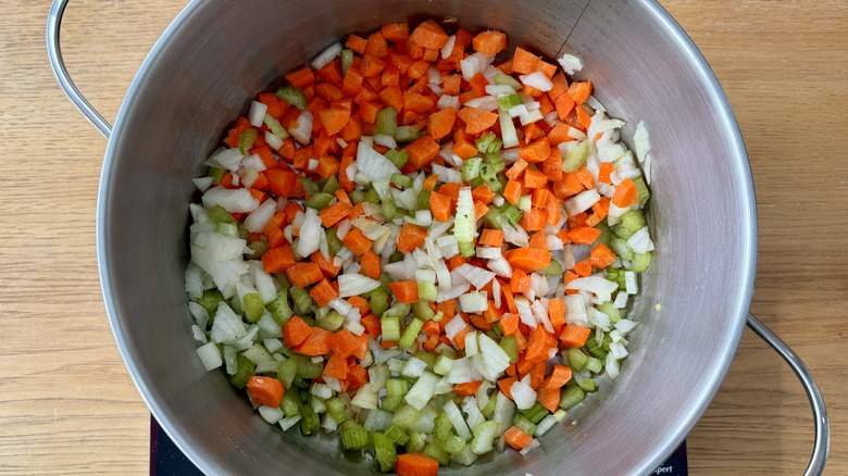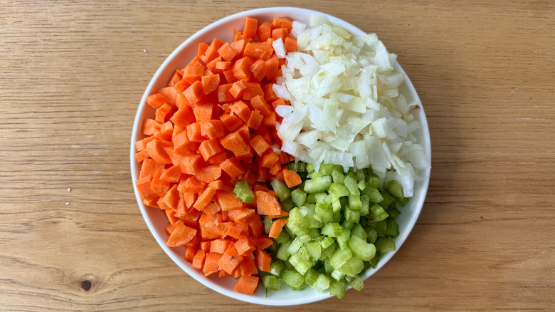 - Prepare the vegetables: Peel and chop carrots, onion, and celery.