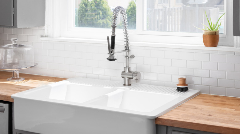 Tile countertops can be beautiful, and they're a great way to add some color, texture, or interest to your kitchen. However, Charlie Kongkaeow points out that depending on your choice of color for the grout, tile counters might come with a similar stigma as butcher's block or unsealed marble. While dark grout might be fine, it doesn't take long for a lighter grout to show its age — and, in fact, it often looks dirty. Plus, most buyers are aware of the maintenance required to keep both tile and grout looking clean.