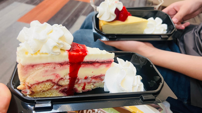 When dining in, the Cheesecake Factory asks that you tell your server you'll be using your birthday slice freebie before the bill comes, and you'll be asked for the phone number connected to your rewards account. When picking up an order, you'll need to both note that you're using your birthday slice reward in the order and provide your associated phone number. A Cheesecake Factory spokesperson shared with us via email that you can even get your birthday slice delivered via DoorDash. All you'll need to do is link your Cheesecake Factory rewards account with your DoorDash account, and the reward should pop up automatically in your DoorDash account.