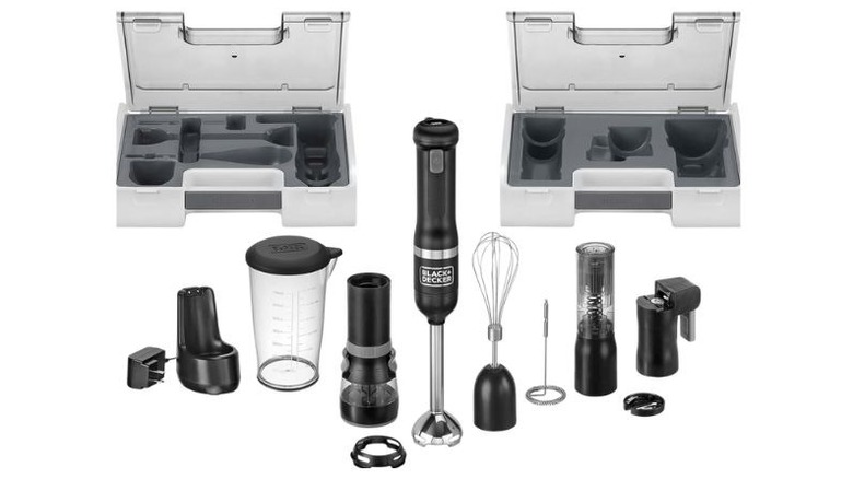 The Black + Decker Kitchen Want 6 Kit is a great buy for those who love to cook but are short on storage space or want to outfit a gadget-less kitchen with one purchase. Honestly, it's impressive how many gadgets this one kit can replace for an investment of around $200. Here's what is included beyond the blender wand: a whisk attachment, milk frother, a 2-in-1 salt and pepper grinder, a wine bottle opener, and a can opener. While that sounds like a lot to store and manage, the kit also includes 2 storage cases to keep everything organized.