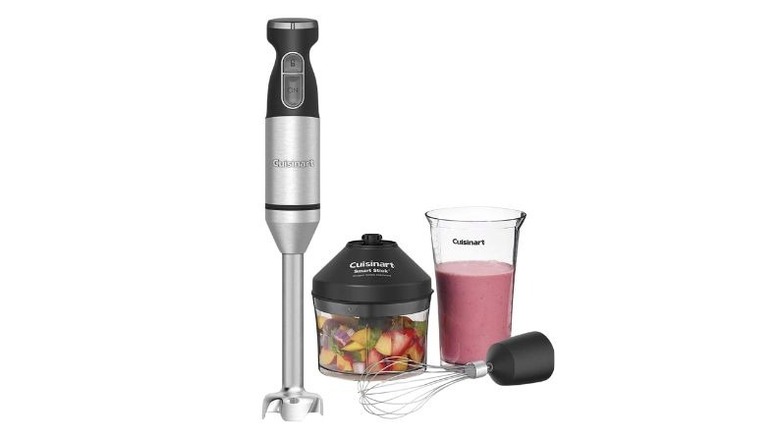 Cuisinart is a trusted brand for food processors, and many people like their immersion blender product. The popular Cuisinart Smart Stick hand blender offers models with variable speed settings or just 2 speeds. (The two-speed model is usually about $20 cheaper). Attachments include a blending wand, a whisk, a 3-cup chopper, and a 2-cup mixing cup for blending.