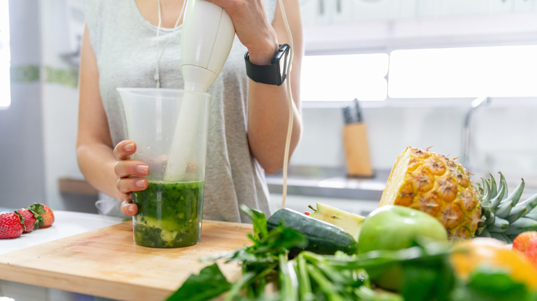 If you're cringing because this sounds familiar, it might be time to invest in an immersion blender, sometimes called a stick or hand blender. This handy kitchen appliance can level up your soup game but also makes quick work of smaller tasks around the kitchen. You can use your immersion blender to emulsify homemade mayonnaise or salad dressing, blend batter, whip cream, make milkshakes, or puree sauces and dips. Can you see why Gordon Ramsey says the immersion blender is an essential kitchen gadget?