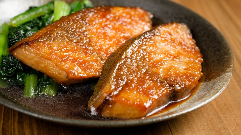 When we think of teriyaki, the sauce is what likely comes to mind first. Indeed, this cooking method is defined by this flavorful glaze, which externally coats foods with a tasty, caramelized sheen. It's created using varying combinations of sugar, soy sauce, mirin, or sake. Of course, you can also create a teriyaki sauce with as few as two ingredients. Regardless, the sauce lends a sweet, salty, and savory palate that melds with many foods.