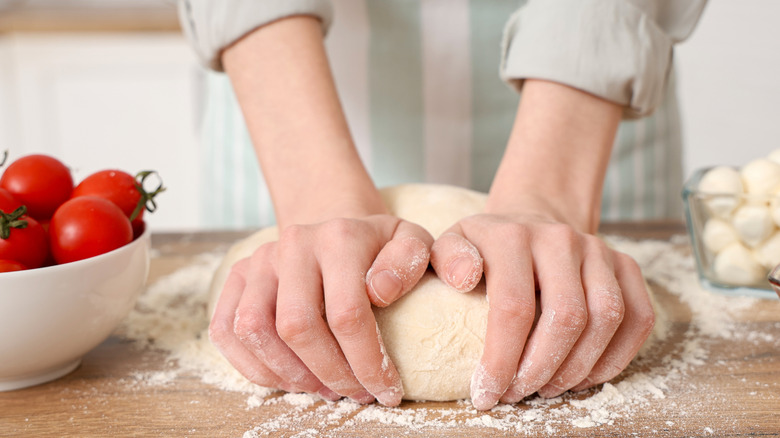 You can, of course, take this same approach with homemade pizza dough, but this kind does give you the time and opportunity to incorporate additions as you mix and knead. You'll also have more luck introducing liquid ingredients in this case, like the beer that some recipes include for a hint of unexpected pizza crust flavor. Once it's finished baking, you can slice it roughly into squares and use it like you would virtually any other bread. And, while pizza crust is particularly conducive to the Caprese treatment, it can also help to make any sandwich more flavorful.