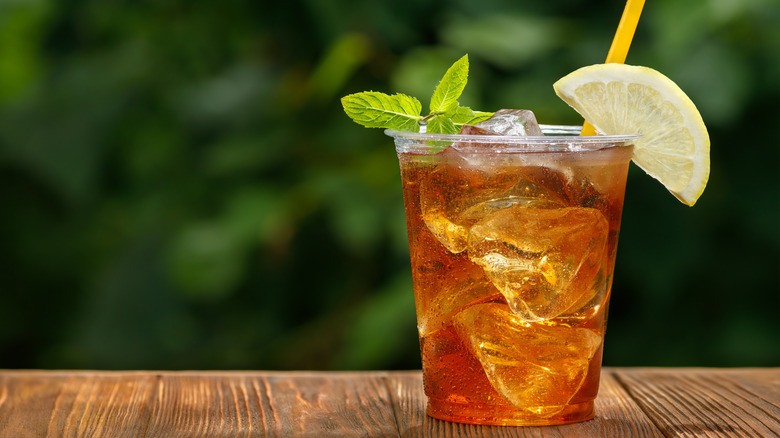 As for the tea, standard black tea is the tea of choice for those who prefer their sweet tea recipes on the plainer side. However, because this drink is both bitter and sweet, many home gourmands spiff up the tea with the addition of either a second sweet flavored tea or a flavored black tea. In the former case, adding a peachy herbal tea, like Celestial Seasonings Country Peach Passion, not only gives the drink some extra flavor but also gives a nod to the popularity of peach flavors in the South. If you'd like to try a flavored black tea, Earl Grey is a great option, because the addition of bergamot gives the cocktail citrusy overtones. It's not quite on par with an Arnold Palmer in flavor. Rather, it's subtle and sophisticated — and just the thing to chase away the summer heat.