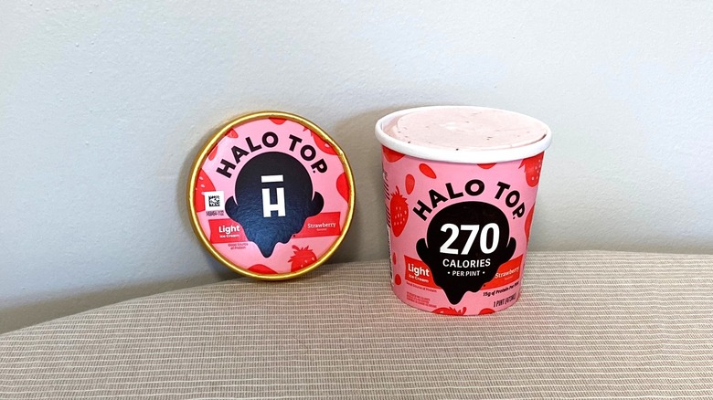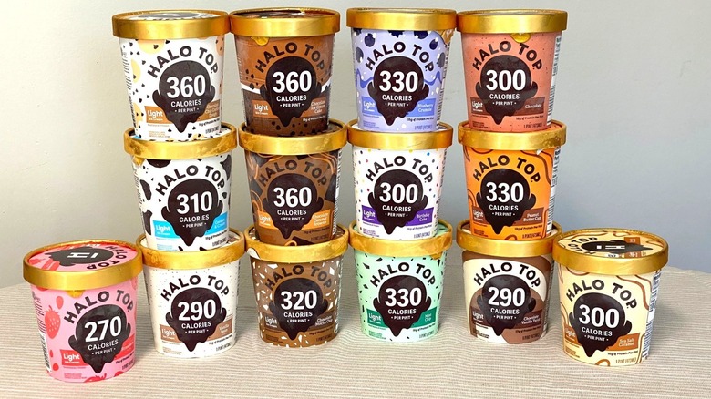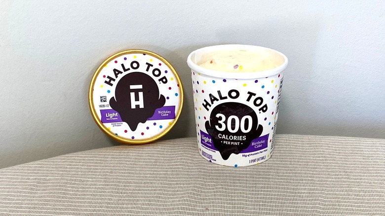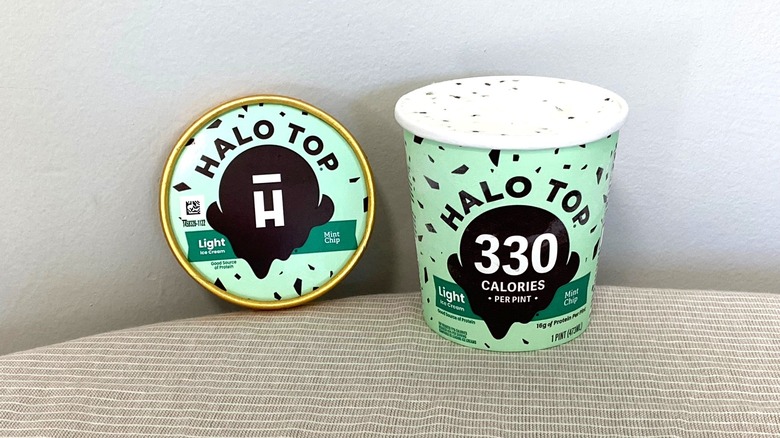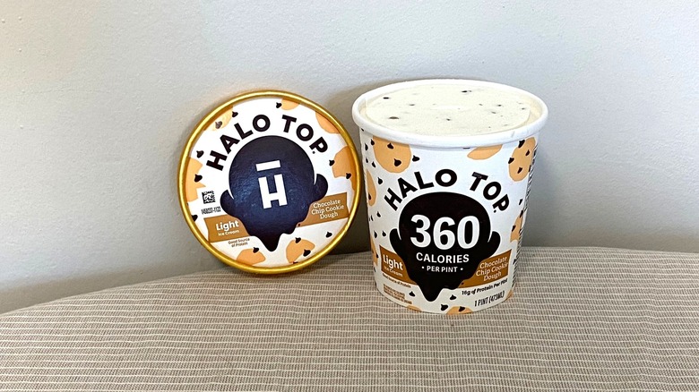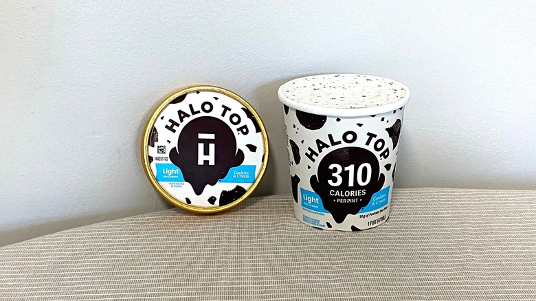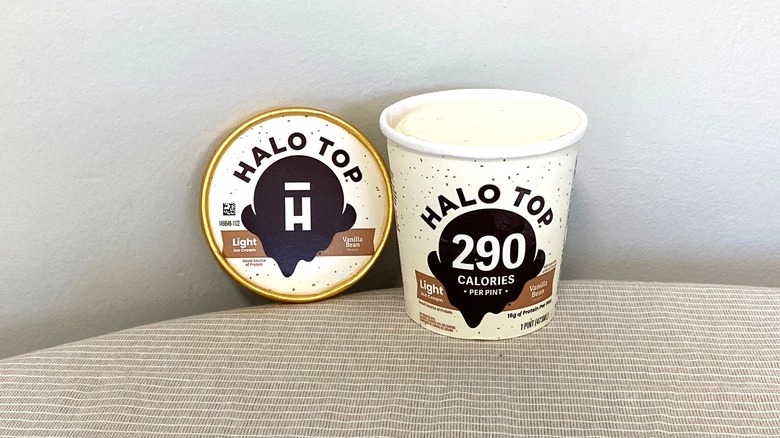 Halo Top produces ice cream with less sugar and fat, and more protein. Not only this, but it aims to correct the issues common with lower-fat ice creams: iciness, graininess, a crumbly consistency, and less overall flavor. Each pint of Halo Top has its own flavorings, but most feature skim milk, cream, eggs, prebiotic fiber, erythritol (a sugar alcohol that's a common artificial sweetener), organic stevia leaf extract (a natural sugar substitute), vegetable glycerin, and organic cane sugar. Halo Top also changed its recipe back in 2022, bringing in ultra-filtered milk with concentrated protein to improve its product's creaminess.