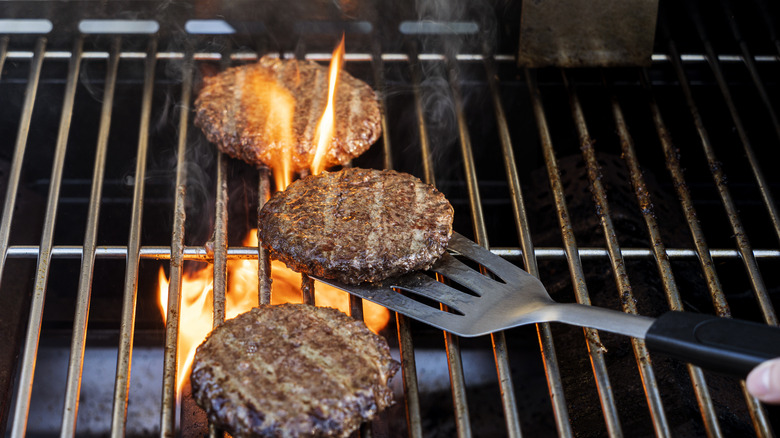 Try to smash them down about a quarter of an inch thick for ideal proportions. This is where a burger smasher works wonders in achieving a uniform flatness. If you've been in the market for a tool to add to your collection, this Cuisinart Cast Iron Burger Press will hone your grilling game in a pinch. However, there's no need to rush to the store if you don't own one. Repurposing a skillet or pan you already have in your kitchen delivers similar results. Here's what you need to do: tear off a sheet of parchment paper, spread it out onto your patties, and crush them down using the weight of your cookware.