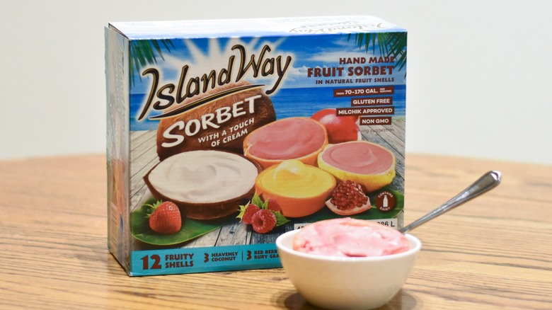 Even if you're gluten-free, you can still enjoy a tasty dessert. While you can whip up your own sorbet in your ice cream maker, these individual serving cups from Costco are much more convenient. The Island Way Sorbet cups come in four different flavors: heavenly coconut, red berry and ruby grapefruit, passionate mango, and zesty pomegranate.