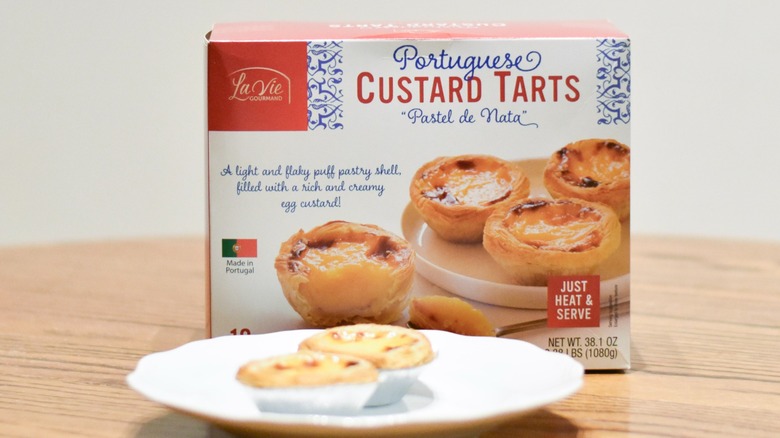La Vie Gourmand Custard Tarts are one of a few dessert options in the Costco freezer aisle that you can heat and serve warm. Also known as "pastel de nata," they are actually made in Portugal, then packaged and sold in Costco stores. They have a buttery puff pastry shell and rich custard filling, which caramelizes on the top when you make them in the oven or air fryer. These do contain egg, which is important to note if you have allergies or sensitivities.