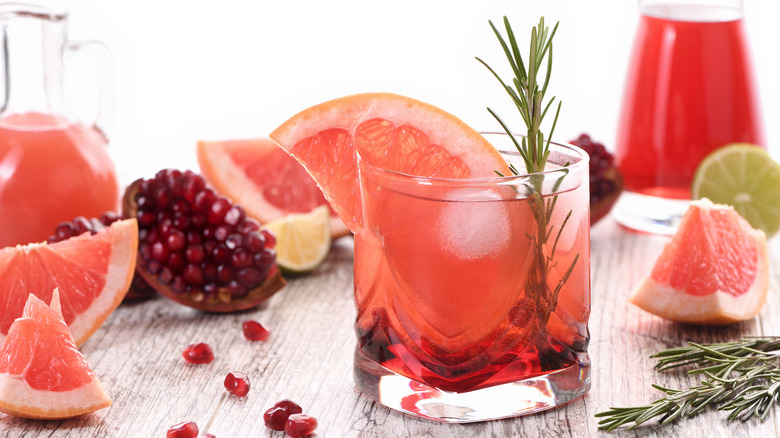 To make this dazzling drink, simply combine equal parts lime juice and pomegranate juice, one-and-a-half times that of gin, and a half-part of simple syrup. Give it all a good shake in a cocktail shaker filled with ice — Garten recommends a full 15 seconds. Finally, add the cocktail into chilled martini glasses and garnish each drink with a twist of lime and a few pomegranate seeds.