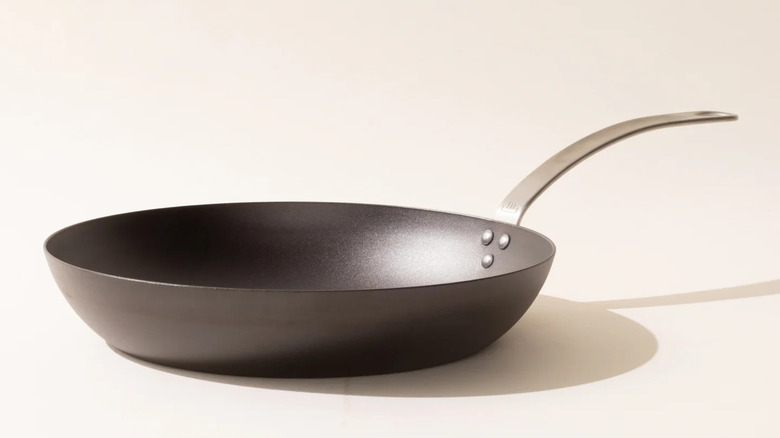 The name says it all; this pan comes pre-seasoned, so it is good to go out of the box, which is something many customers will appreciate, especially those who are new to the carbon steel world. The pans are European-made in Sweden, something rare in modern manufacturing, and has a limited lifetime warranty. Made In claims that the pans offer the heat retention of cast iron, combined with the dexterity of stainless clad, to provide a natural alternative to nonstick pans. They are safe to 1200 degrees Fahrenheit and come in at 4.31 pounds. Fans of the pan say the sloped sides help to flip food, while the handle ergonomics allows for confident gripping. Additionally, they're known to heat up fast — saving you time when you just want to get dinner on the table. If you're averse to traditional nonstick and like to cook on the stovetop and then finish dishes in a ripping hot oven, then Made In have you covered.