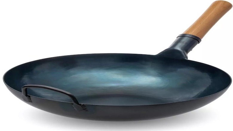 A Wok in your cooking arsenal can help you make an amazing stir fry. It is perfect for braising and deep-frying, too. They heat up fast and stay hot, and with proper seasoning and maintenance, they will become nonstick, allowing for effortless cleanup. If you want to replace your old wok or dive into the world of wok cooking with a real winner, then go for the YOSUKATA's Flat Bottom 13.5-inch Blue Carbon Steel Wok. This pan has garnered a solid reputation online, performing well with heat tests. The gorgeous blue steel, to those unfamiliar, is achieved by annealing the metal, which is a super high heat treatment to prevent corrosion. It comes pre-seasoned to allow users a leg up with the nonstick potential, and if treated right, will continue to improve over time. If properly pre-seasoned before cooking with a layer of oil, it is possible to cook an egg with zero sticking. The wooden handle has a non-sliding finish for grip and will shield the user from heat — something that is especially important with high-heat cooking, and appreciated by users. As far as usability goes, this pan will work on gas, open-fire burners, electric coils, ceramic, and induction stovetops.
