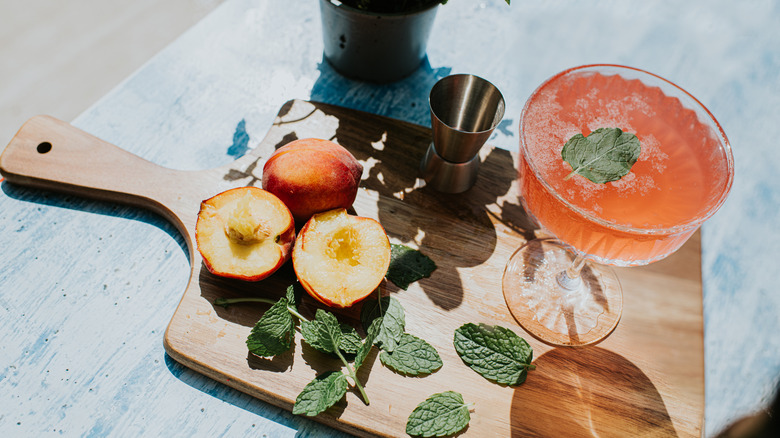 Who doesn't relish a ripe peach during its peak season? This quintessential stone fruit can be enjoyed in multiple ways — on its own, in fruit salads, and of course, in a fruity beverage. Chances are, though, that after you stock up on the sweetest peaches at the store, you'll be left with several that have passed their eat-over-the-sink stage (even if stored at room temperature). Before you think about tossing them out, know that you've been gifted with an excellent foundation for frozen cocktails, which have been celebrated in the universe of boozy beverages all the way back to the Prohibition days.