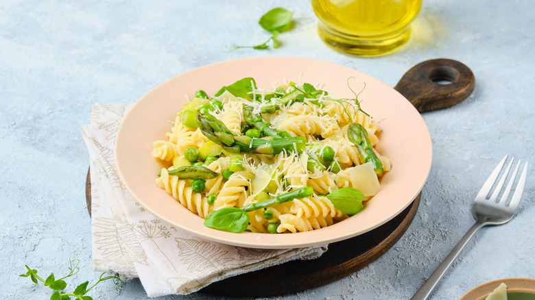 Asparagus and Parmesan sauce is a combination that tends to fly under the radar. This silky, decadent duo is vegetarian-friendly and surprisingly simple to make, as the creamy texture relies on grated Parmesan that melts in a heated saucepan. As such, little to no heavy cream is actually required unless your sauce needs a bit more body, and even then you may elect to just add starchy pasta water to keep your dish as light as possible.