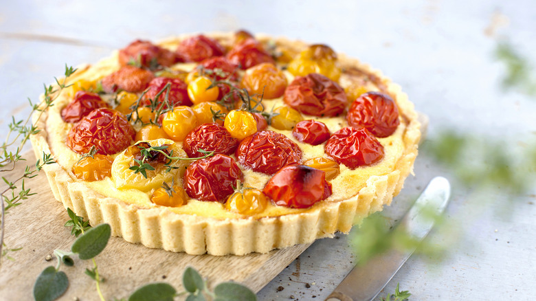 While green tomatoes do make for a winning dessert pie, roasted tomato pies are more often thought of as a savory dish. Layered with cheese atop a perfectly crispy crust, a well-made tomato pie is truly something to behold. Unlike a sweet tomato pie, you can use a variety of tomato types in this dish, from heirloom to Campari. But you might want to give the humble, tart green tomato a chance. After all, if they can be subbed in for apples, they can also work as a replacement for other tomatoes.