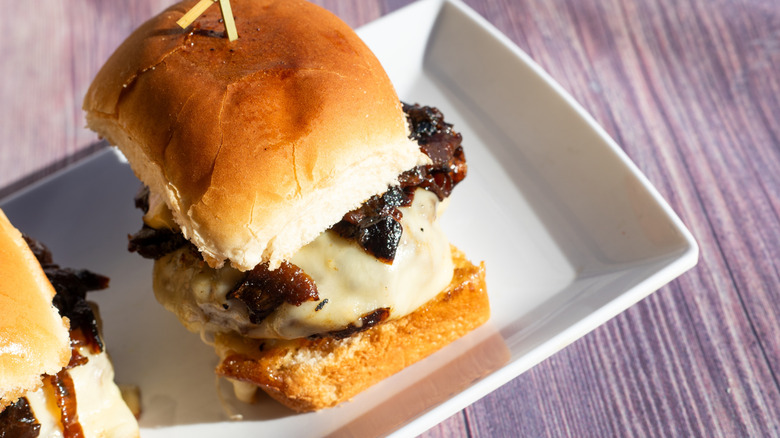 To maximize the flavor, you can also ask for an extra container of the chain's signature honey butter, which you can spread on the inside of your rolls before adding the steak strips. Other sauces that can elevate the sliders include traditional steak sauce, spicy mustard, and horseradish. You can also whip up a simple spicy mayo to add a bold kick to your sliders. With a few simple touches, you'll have a delicious meal ready to go so you can enjoy that wonderful flavor a second time.