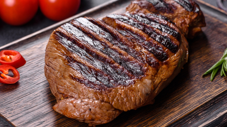 Like ribeye, chuck steaks are ideal for grilling, with the high heat and smoke favorable to the beef — though keep in mind that regular chuck steaks are not as tender as chuck eye, so be sure to check the label. You'll get a nice crust on the grill, and with careful temperature control, you can still manage to attain the perfect medium rare. If cooking outdoors isn't an option, then a pan-sear and high-heat broil is also a delicious option. Just avoid elongated cooking times, and never take the beef past medium; it turns out not so tasty. Otherwise, nail the prep with the chuck eye, and enjoy a great steak at an approachable price.