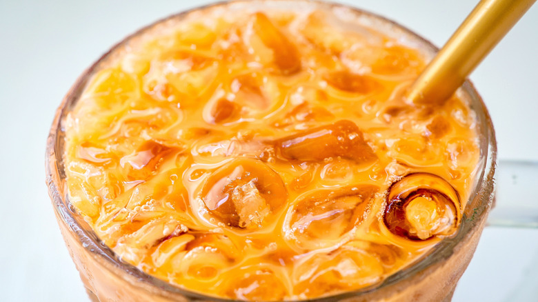 Thai iced tea is a popular menu item across America, from amazing Thai restaurants to adorable bubble tea shops. The perfectly spiced drink has become well-loved for its not-too-sweet taste and iconic orange coloring. However, not many know what exactly causes the drink to be so orange in the first place. The answer is a little bit of a letdown, but don't let that dissuade you from continuing to enjoy this iconic beverage.