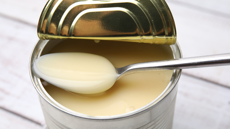 To some people, coffee creamer and milk are interchangeable. However, the two liquids enhance the beloved beverage in different ways. Coffee creamer tends to add flavors and sweetness to coffee, as well as an extra creamy element. It can also be found in the grocery store in a wide array of flavors, with classics like vanilla and caramel, and more experimental flavors, such as chocolate chip cookie dough and the seasonal favorite, pumpkin spice. Milk, meanwhile, carries a neutral, more predictable taste. But given that there is a variety of different types of milk, the amount of creaminess it brings to coffee can vary. The choice gets more complex when considering dairy-free milk, and some milk alternatives are better than others when it comes to coffee. If you are looking to spruce up your day-to-day morning cup of joe without purchasing store-bought creamers, you can do so with a common canned ingredient.