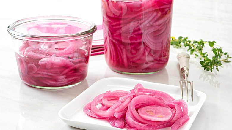 "Pickled onions are a staple for a reason," Tregaye Fraser says. "Their tanginess cuts through fatty flavors, making them a great addition to both beef and veggie burgers." Other chefs agree that they make for a great topping option. "If you're not already putting these on burgers, are you even living?" James Callery asks. Julia Chebotar loves to combine them with melted Gruyère or a fried egg.