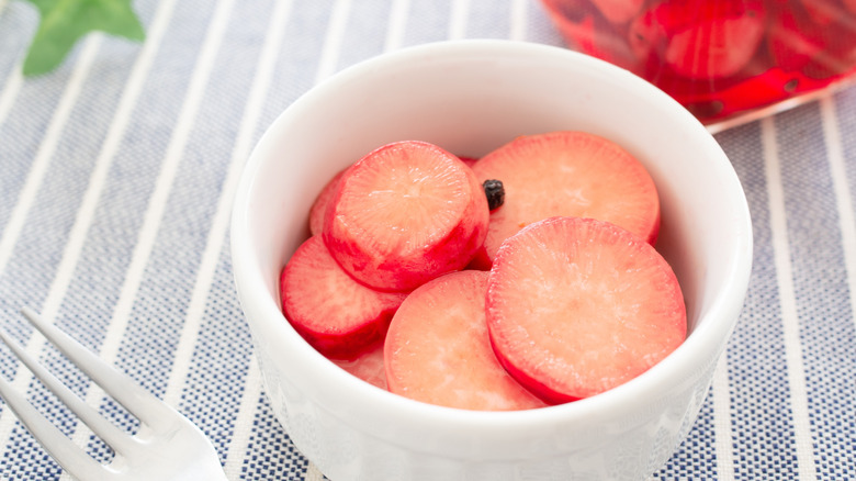 And as it turns out, you don't need that long to pickle something. You can soak it in a quick brine and have it ready to go for dinner that night, like in some recipes for burgers with pickled beets. With some homemade brine, onions, and roasted beets, soaked in a bowl for just an hour, you can have a gourmet option much more cheaply. Try them with lamb or veggie burgers for extra color and depth.